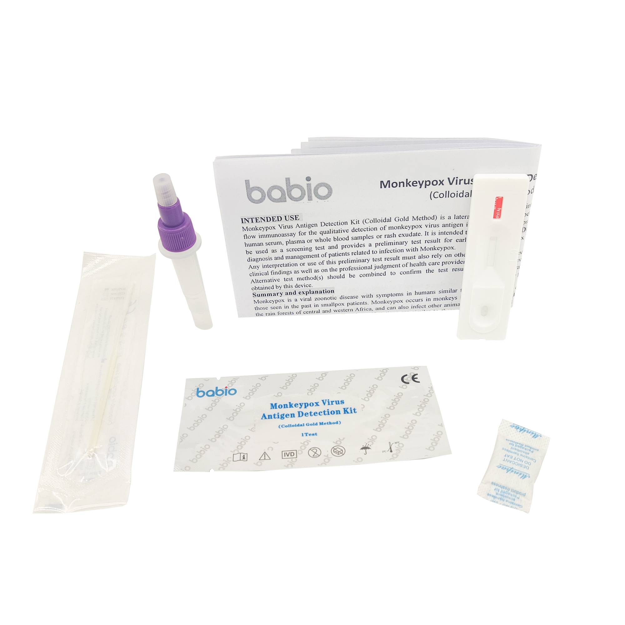 Monkeypox Virus Antigen Detection Kit (kolloidalt gull) er en immunologisk diagnostisk test som brukes for påvisning av monkeypox virus antigen basert på kolloidalt gull-immunokromatografianalyse. Denne metoden er rask og praktisk å bruke og krever lite utstyr. Det kan utføres innen 15-20 minutter av minimalt kvalifisert personell.